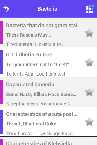 Infectious Disease/Microbiology Mnemonics provides you with clever acronyms, stories, and memory tricks, on your fingertips. Subjects range from bacteria, viruses, parasites, fungal, pathology, & pharmacology.