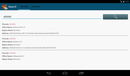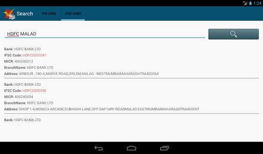 IFSC & PIN Code Application provides easy way to search pin codes, bank IFSC and more details. You can search pin codes by code, district or office name. You can search bank IFSC by bank name or branch name.IFSC & PIN Code application is used to know details about all banks under Reserve Bank of india.