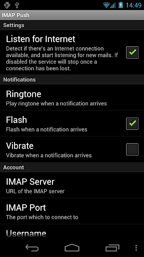 This little utility allows your Android device to receive Push notifications through the IMAP IDLE protocol.