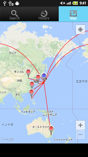 ・検索IPアドレスの位置情報をマップ上で見ることができます。