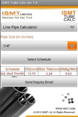 Keywords : pipe, tube, calc, calculator, ismt, weight, diameter, thickness, line, schedule