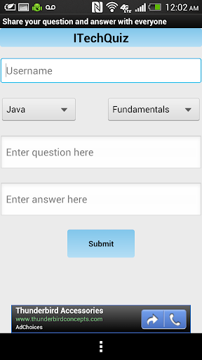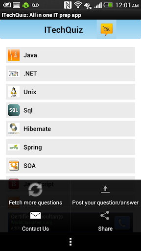 ITechQuiz is the most consolidated set of IT interview question and answers ranging from Java, J2EE, Servlets, JMS, Struts, UNIX, SQL, Spring, Hibernate, .NET, C# , WCF, WPF, ADO.NET/LINQ, ASP.NET, JavaScript, AJAX, jQuery, XML, Webservices(SOAP/REST). It is a must have on-the-go app for the IT crowd. One app for all your interview needs. Over 600+ questions/answers organized by topic. Ability to fetch latest questions from time to time. Share your own interview questions by posting them and receive notifications when new questions are added. More topics to be added soon.