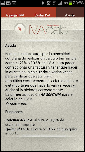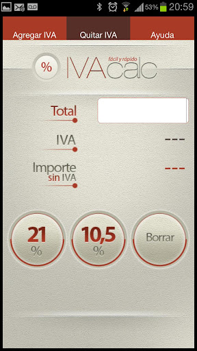 Aplicacion para calcular el I.V.A. de cualquier importe, tambien quita el IVA de cualquier importe.