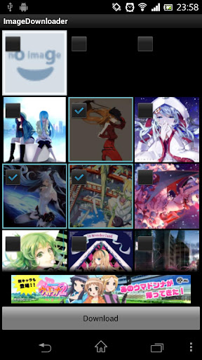 ダウンロードされた画像は「ギャラリー」内の「ImageDownloader」というフォルダで確認することができます。画像本体を参照したい場合は、SDの「/mnt/sdcard/Android/data/com.choilabo.ImageDownloader/files/ImageDownloader」へアクセスしてください。保存した日付のファイル名で画像が保存されています。
