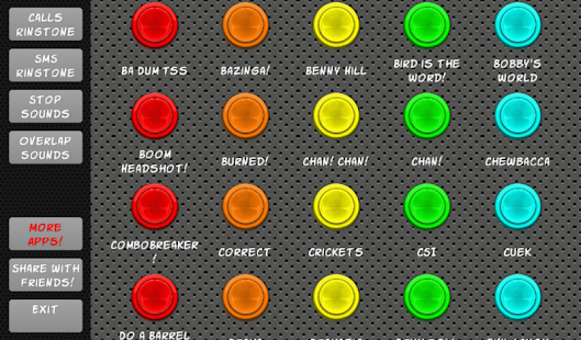 Instant Buttons is a great soundboard that includes the funniest sounds ever, This application will offer to you many funny and quickly sounds that you might use anytime. Instant Buttons has more than 260 sounds! From the most famous memes of 4chan/internet (as the ComboBreaker, Falcon Punch, Khaan, Rimshot, This is Sparta, Nyan, Chuck Testa, Mudkip or Harlem Shake) to dialogues of your favorites series (as Big Bang Theory, How I Met Your Mother, Community, South Park, Lost or Adventure Time), going through mitical videogames sounds (as PacMan, Age Of Empires, Metal Gear, Metal Slug, Star Fox, Unreal, Counter Strike, Skyrim, League Of Legends, Street Fighter, Diablo, Mario...) and quotes for epic movies (Harry Potter, Terminator, Saw, Hunger Games, Kill Bill, Batman, Rocky...) download free Instant Buttons!