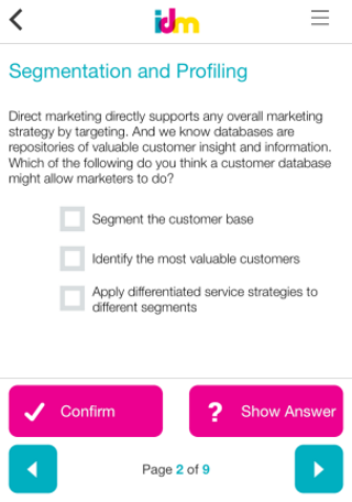 The IDM (Institute of Direct and Digital Marketing) is the UK’s only government-approved institute for the professional development of direct and digital marketers, offering a broad range of practitioner-taught training courses and ten internationally recognised professional marketing qualifications. It is also a membership organisation, providing status, knowledge and networking opportunities to today’s senior marketers, and an educational trust, supplying learning materials to higher education alongside initiatives to help university graduates take their first steps in the marketing profession.