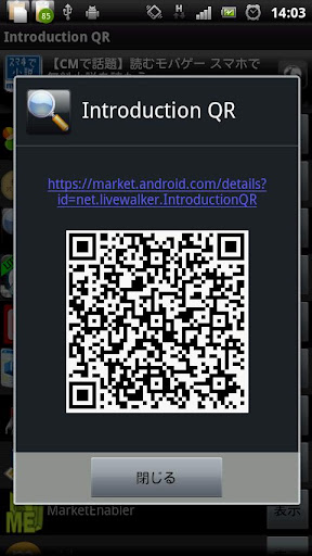 端末にインストールされているアプリ一覧から、アンドロイドマーケットのQRコードを作成します。