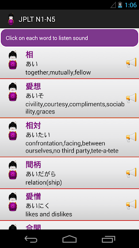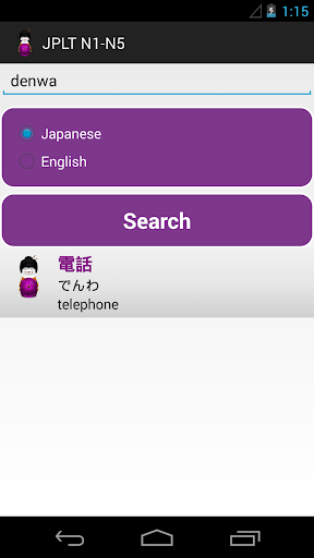 JLPT (N1-N5) Quiz is a helpful tool to learn the Japanese language and prepare for the JLPT exam by studying Japanese vocabulary. It contains a dictionary of over 8,000 words required for the exam across all 5 levels. The dictionary can be searched on using kanji, kana (hiragana/katakana), or romaji. You can filter the dictionary by JLPT levels and each word is colour coded according to its level.