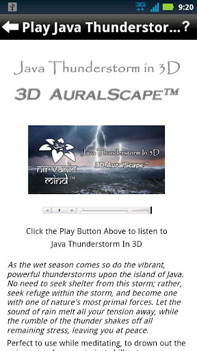 Visit www.nirvanicmind.com/3DAuralScapes for more information and to listen to samples of other 3D AuralScapes™ you might be interested in, as well as our meditation, brainwave entrainment and hypnosis products which incorporate this technology.