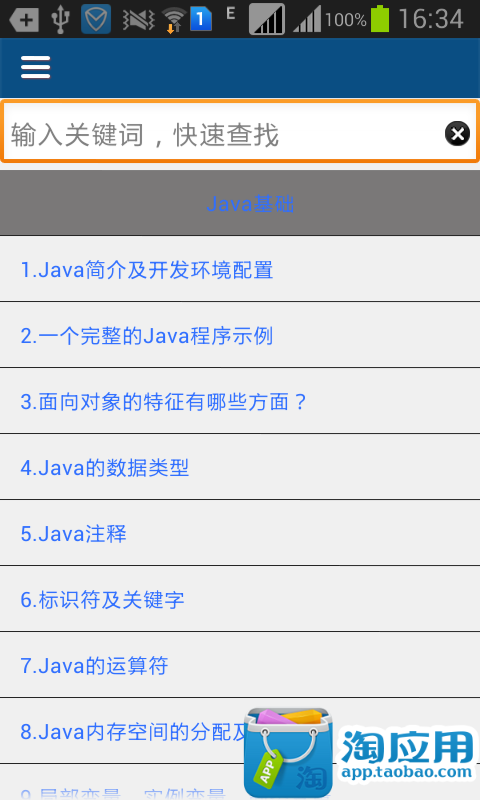 本应用精选了在学习、笔试、面试过程中经常遇到的知识点,覆盖面广。面向所有学习Java的朋友们,适用于初学者和有一定的开发经验的开发者。