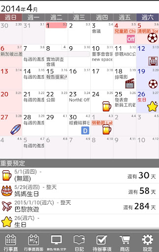 ・重要的活動可以用紅色顯示、可以變更每天的背景顏色等功能、能幫助您一眼就可以掌握每天重要的行程。
