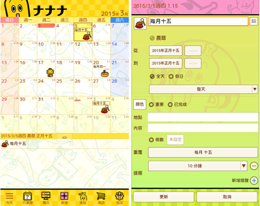 NEW!已支援編輯個別的重覆予定事項的功能。
