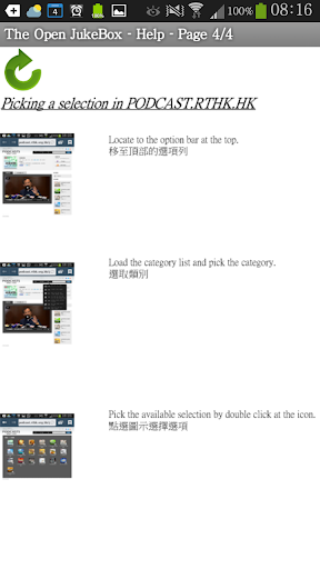 The Cloud base collection is set up, manage and support by the system administrator remotely. At all time the contents can be modified and enhance. Of course, it is still subject to the availability in the RTHK podcast system. Through this jukebox, the retrieve on the podcast programs are simplified and easy to use. Fits the need for anyone at all ages.