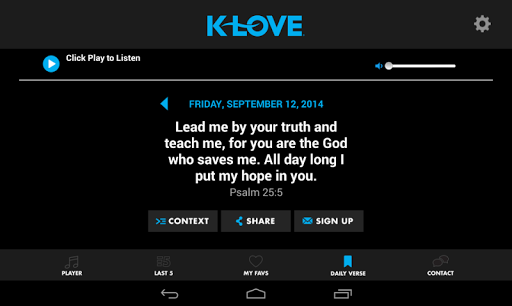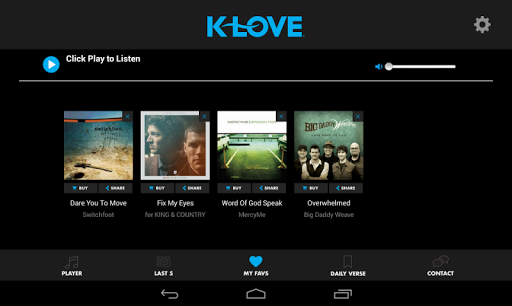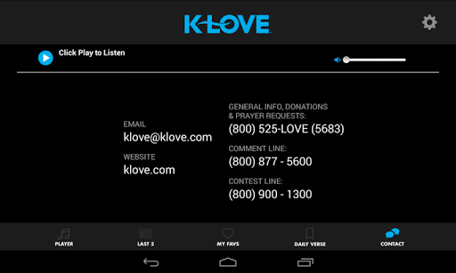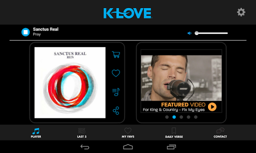 K-LOVE plays Positive, Encouraging music featuring artists like Chris Tomlin, Third Day, and TobyMac. K-LOVE is a not-for-profit, listener supported radio station dedicated to sharing the hope of Jesus through great music.