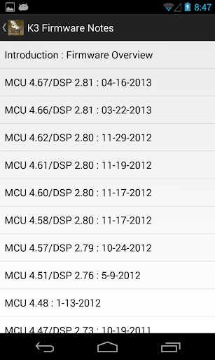 Further the app includes all K3 and KX3 Firmware Release Notes for the life history of each radio. Again, this information is an essential reference the programmer.