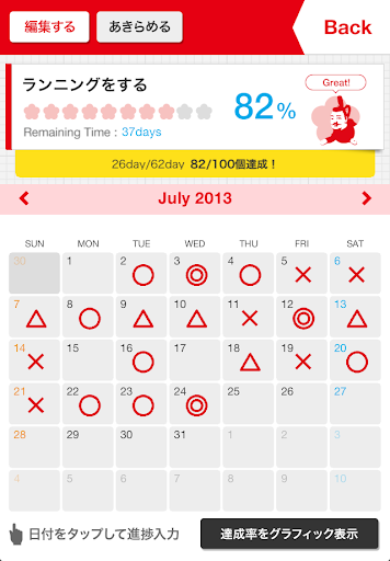 自分で設定した目標(ゴール)までの日々のがんばりを、簡単に記録。