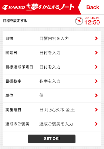 期間や数値など自由に設定できるので、自分だけの目標が作れます。