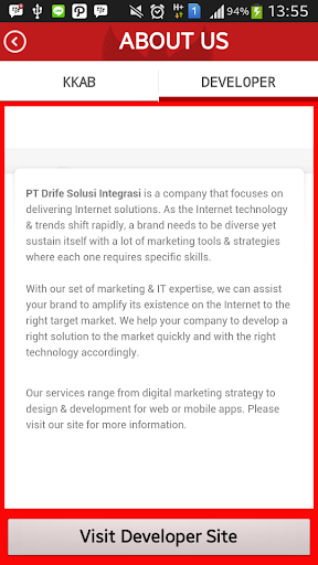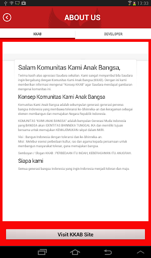 KKAB Android Apps merupakan aplikasi news dari "Komunitas Kami Anak Bangsa". Aplikasi ini akan memuat informasi dari web KKAB, dan akan mendapatkan notifikasi ketika ada pembaruan artikel.