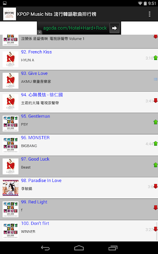 每週更新的排行榜,確保您隨時都站在潮流的最尖端,讓您第一時間就可以看到最新的MV。 著名如少女時代、SUPER JUNIOR、BIG BANG、EXO、FT ISLAND、4MINUTE、HYUNA等等的歌手都會有極大的機會出現在這個榜上。