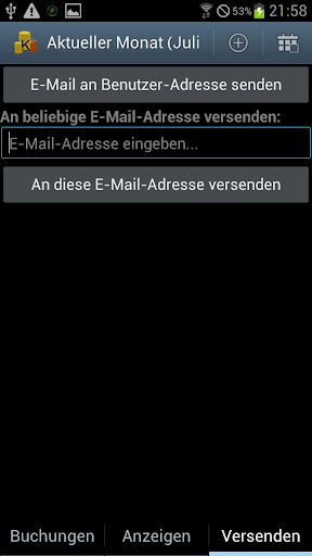 - Versenden von PDF-Datei, CSV-Datei (für Import) sowie Beleg-Dateien per E-Mail