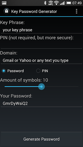 Using this app you need to remember only one password or a phrase and it will generate passwords for your accounts.