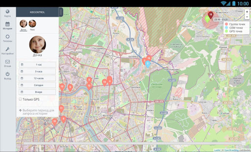 - Видеть историю его пересмещений за час, три часа, 12 часов или сутки.