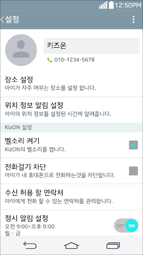 - KizON 연락처 관리 : 아이에게 전화를 걸 수 있는 연락처를 관리합니다.