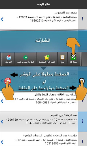 • مشاركة العناوين والمعلومات عن طريق مواقع التواصل الاجتماعي Facebook و Twitter أو Whatsapp أو عن طريق البريد الإلكتروني
