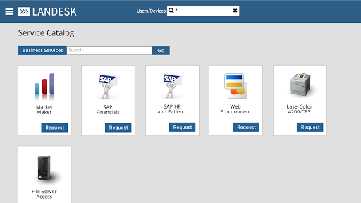 该应用程序要求您的 IT 服务部门使用 ANDESK Service Desk 7.8 及以上版本,或者 LANDESK Management Suite 9.6 SP1 及以上版本。