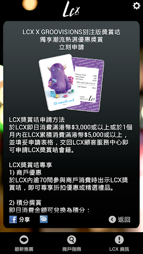 LCX Mobile Apps 讓你享有多間商戶的獨家優惠,並定期提供最新商舖、推廣活動的第一手資料,讓你盡情享受購物的樂趣!