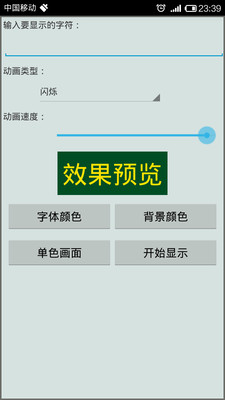 这个应用可以将用户输入的字符以大字幕的形式展现出来,类似于平时生活中的LED广告字幕,用户可以设置字幕为闪烁和滚动,可以设置字符的颜色和显示的背景。用户借助这个应用可以在公共场所找人;在演唱会中为自己喜欢的歌手加油!给舞台上自己喜欢的人助威!甚至可以用于表白!