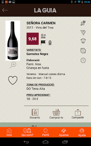 Aquesta aplicació és la versió per smartphones de LA GUIA DE VINS DE CATALUNYA. L’equip que la porta cada any a terme tasta a cegues els vins de tots els cellers catalans que vulguin presentar els seus vins al tast, que cada any són en total entre 360 i 380. Cada any des de fa sis s’ha publicat un recull que conté una mitjana de 1500 referències tastades i puntuades.