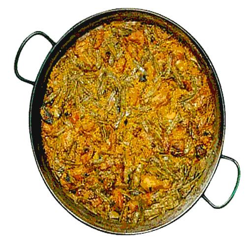 La auténtica PAELLA VALENCIANA, no es de mariscos, no lleva cerdo ni especias. La autentica paella valenciana lleva los ingredientes que tenían a mano los labradores, pollo, conejo, a veces pato y las verduras típicas de sus pequeñas huertas familiares como son el garrofón, la tabella, la ferraura, romero, a veces alcachofa y caracoles, tomate, pimenton, azafran y colorante alimentario y nada más, aparte del agua el aceite, sal y por supuesto el arroz.