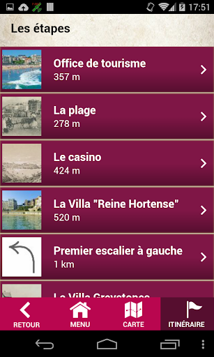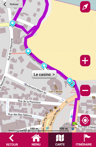 Votre position est repérée automatiquement sur la carte grâce au GPS et vous êtes guidé d’étapes en étapes lors de votre visite. Choisissez un des itinéraires, rendez à l’office de tourisme et faites la découverte de la ville à votre rythme.