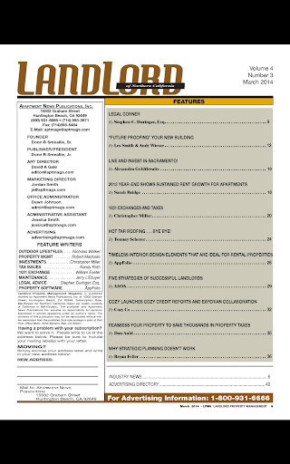 Landlord Property Management Magazine is a resource for over 50,000 Multi-Family Property Owners a month across Northern California! As a sister publication to Apartment Management Magazines of Southern California, apartment industry professionals located across the Bay Area and Central CA seeking property management services, maintenance services and tips, legal services and advice, and more, have trusted Landlord Property Management Magazine!