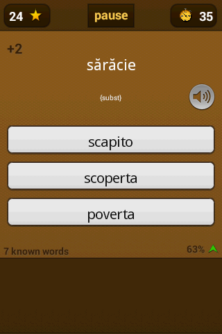 You can check anytime your progress in learning these languages, by taking a look at your game statistics (learned words, total known words) which reflects your vocabulary knowledge.