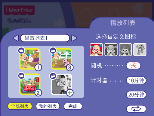 现在妈妈可以为宝宝创建一张自定义播放列表,里面有宝宝最喜欢的,可以一遍又一遍播放的视频!