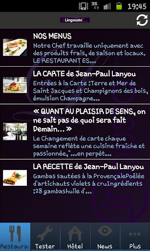 Recevez quotidiennement toutes les informations de votre hôtel-restaurant gastronomique (menus, évènements, carte, réservations, ...) situé à Cuers, au coeur de la Provence et à 15 km de la Méditerranée.