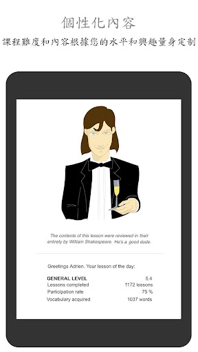 每天早上, 你會收到一封各種不一樣聽寫練習的伊媚兒。每天只需要10分鐘就可以完成。課程是由Delavigne Corporation的故事為背景, 為英文學習者提供各種不同的練習, 像是由不同英文口音的商業對話、聽力練習, 還有依每個人程度不同而打造的溫習進度。只要完成課程並把你的答案送出, 就會馬上收到一封答案伊媚兒, 裡面包含了你每天的成績、 個人化的答案解析、 你想學習的新英文字彙, 當然還有對話的腳本等等...