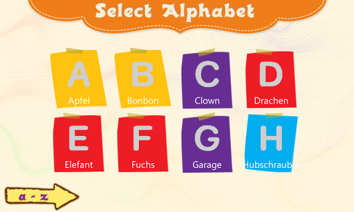 Learn, recognize and write German alphabets with four steps interactive learning.