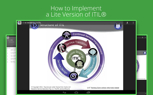 • Lesson 3: Implementing ITIL and next steps – includes implementation considerations and some real world case studies