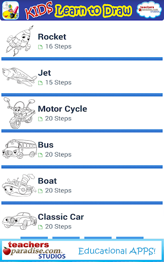 Learn to Draw Cartoon Vehicles art game from TeachersParadise.com Studios.