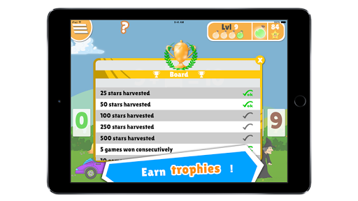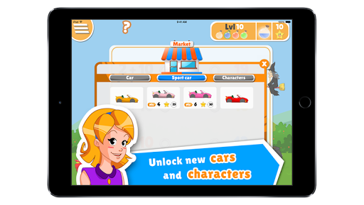 A reward system keeps kids engaged by allowing them to collect stars throughout the app's challenges and redeem them to unlock new cars and characters. In addition, each milestone reached (25 stars gathered, 10 games won, etc.), results in the user earning a corresponding trophy.