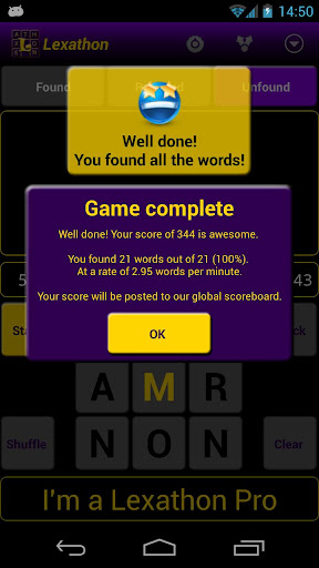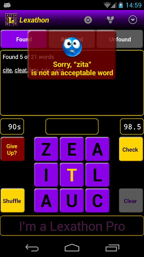 The faster you react and the more words you find from the English dictionary, the higher your score! Lexathon is translated in 19 different languages, so post your scores to Facebook, throw down the linguistic gauntlet and challenge your friends to beat your top scores.