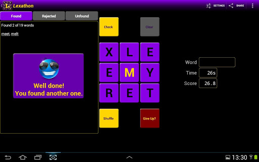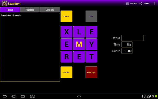 Shake your phone to scramble the letters to discover as many words as possible. Don’t waste any time! Once you’ve found as many words as you can, click the ‘Give up’ button to maximise your score and see all the words you missed.