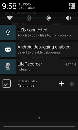 LifeRecorder turns your phone into an always-on audio recorder that saves the last 60 seconds of your life at the touch of the button. Ever heard a memorable quote or joke from someone and went "I wish I'd recorded that?" Now you can!