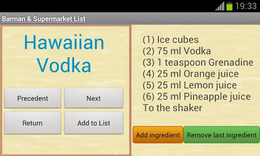 Forget your pen and your paper, the lists of "Barman & Supermarket list" application make everything for you !