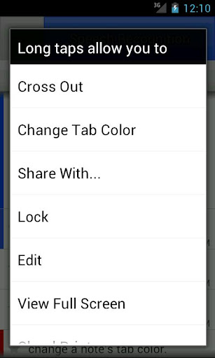 *舉辦的“顏色”選項卡的筆記本電腦。您可以通過長按一個便條,選擇“更改標籤顏色”選項卡的顏色說明。