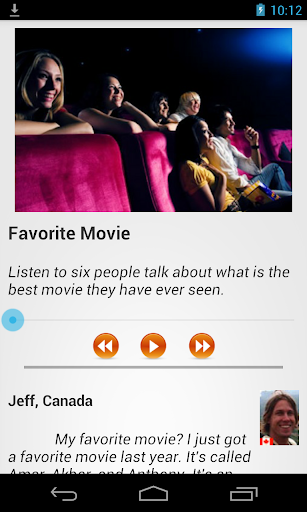 This courses very useful to listen english, study vocabulay and practice conversation in English. This app have :