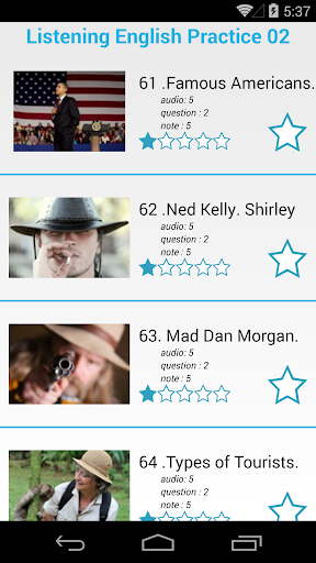 Every lessions in this app have question and notes. You must listen and practice then check the quiz. You can see answer to check your score. I hope you like it and study english better.